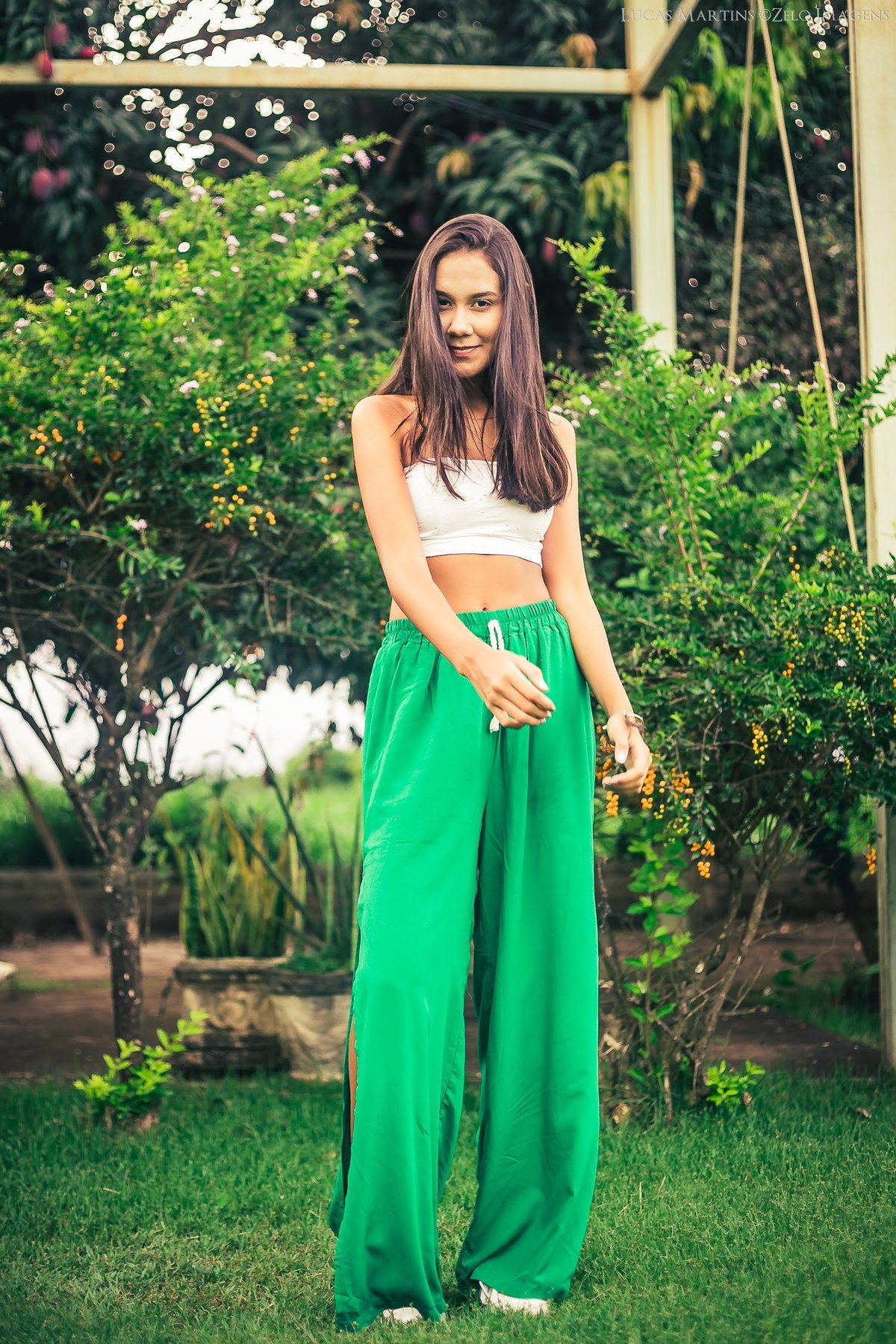 E com a Male foi assim. Ela escolheu uma fazenda para a sessao de fotos, um espaco com bastante verde, arvores, piscina, em fim, tinha elementos suficientes para que o ensaio fosse perfeito.
